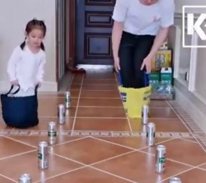 Juego 1: consiste en colocar unas latas, botellas, libros, lo que tengamos más a mano y utilizarlo como obstáculos que debemos pasar haciendo zigzag sin tocarlos, mientras vamos con los pies metidos en una bolsa (resistente). Lo ideal sería hacer dos carriles y hacerlo a modo de carrera aunque si no tenemos espacio podemos hacerlo cronometrando los tiempos.