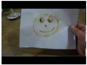 - Sobre el papel y con el pincel o con los dedos, haremos nuestro dibujo o escribiremos nuestro secreto más preciado.
