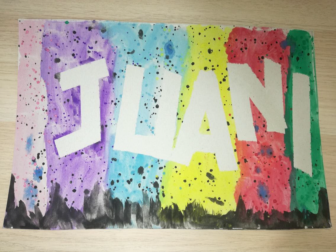 - Pegamos la cinta adhesiva formando nuestro nombre.