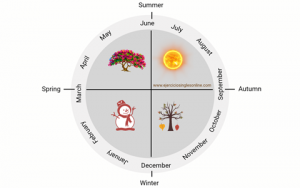 Vamos a trabajar las estaciones del año en inglés, primero adjunto una imagen en el que aparecen los meses del año y las estaciones del año en los meses que corresponden. También adjunto el enlace a un video en el que a través de canciones explican las estaciones del año.