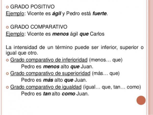• Comparativo: puede ser de inferioridad, de igualdad o de superioridad.