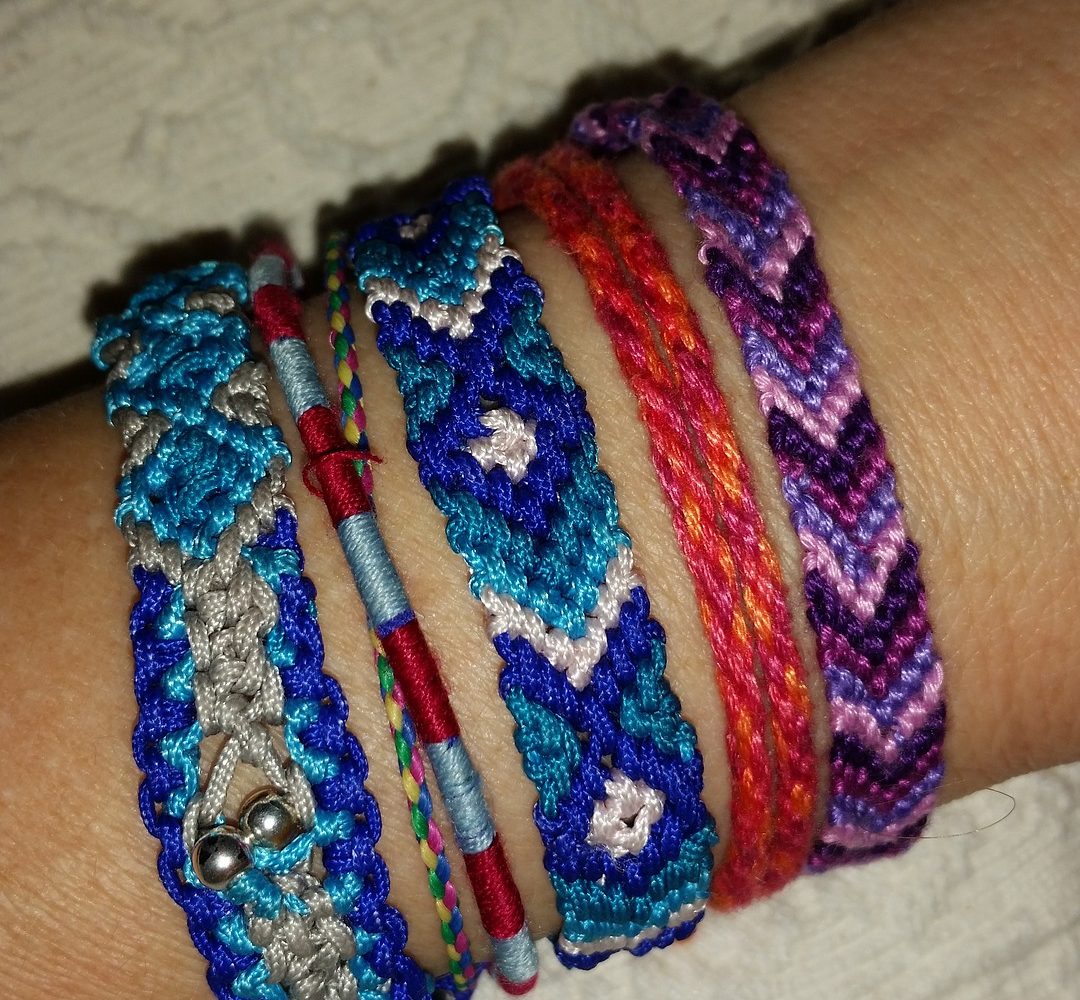 Ya sabéis, podéis adaptar el material que tengáis por casa: lana, cuerda, cordón, hilo etc. También, si tenéis, podéis decorar vuestras pulseras con abalorios o cuentas de colores. stas son las pulseras que me he hecho para este verano siguiendo los pasos del vídeo.