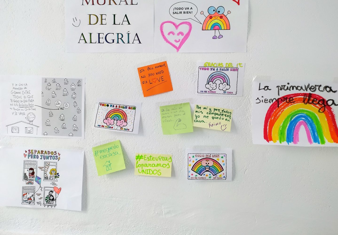 Yo, por ejemplo, hace unos días que creé un mural en mi bloque de vecinos para que tuviéramos un lugar de encuentro “virtual-casero” ahora que esta situación nos obliga a mantenernos distantes unos de otros; os dejo una foto para que lo veáis. Espero que os animéis y me mandéis las fotos de vuestras creaciones.