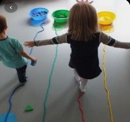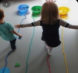 Por tanto, para hacer este laberinto vamos a utilizar una cuerda o cinta, podemos hacer curvas o círculos con la cuerda o el celo, de esta manera, también podéis poner obstáculos como sillas por las que tenéis que pasar por debajo o almohadas que tenéis que saltas, eso os lo dejo a vuestra imaginación. Pero recordad que tenéis que seguir la línea sin caeros que, si no tenéis que volver a empezar. Además, podéis hacer competiciones con quien queráis, para ver quien llega antes e incluso varios relevos.