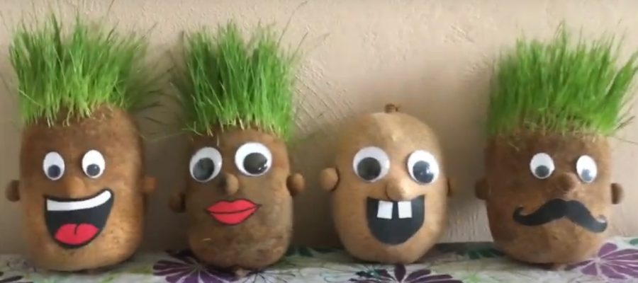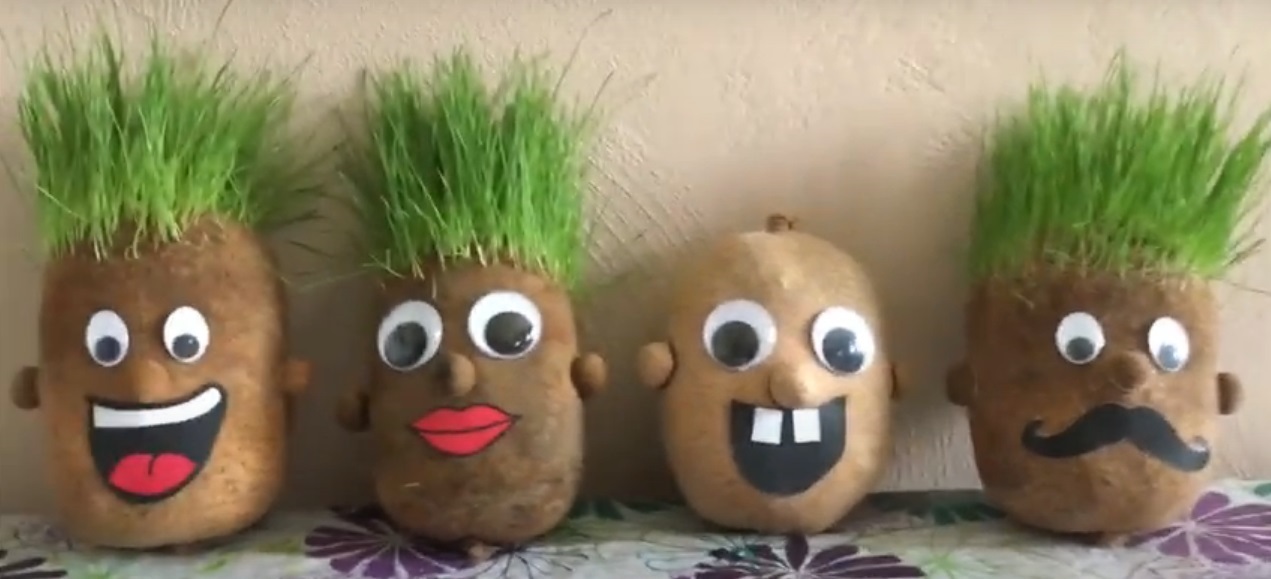 Manualidad: muñeco con cabeza de pasto.