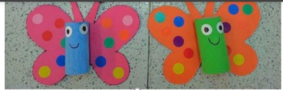 Necesitaréis: Una cartulina de color Un rollo de cartón de papel higiénico Gomets de colores Tijeras Pegamento Rotulador negro y de colores Elaboración: Trazad en la cartulina la forma de dos alas de mariposas, separadas la una de la otra y recortadlas. Podéis trazar primero el dibujo de una y