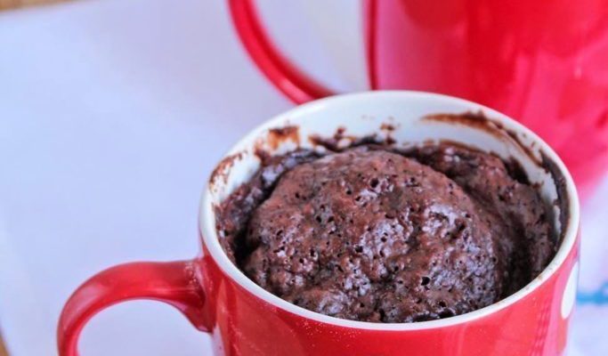 Este bizcocho es una idea perfecta. Se mezclan los ingredientes directamente en una taza con una cuchara, se cocina 5 minutos en el microondas, ¡y listo! INGREDIENTES: 1 huevo 4 cucharas de leche 3 cucharadas de aceite de oliva 1 cucharada de cacao 2 cucharadas de azúcar 3 cucharadas de