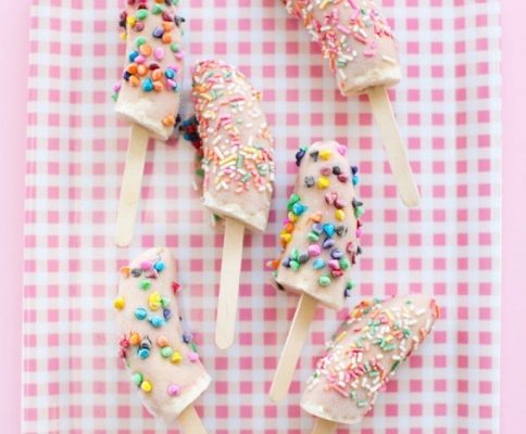 Ingredientes Plátanos Yogur (de soja, de fruta, natural, griego… el que más os guste) Palitos de helado (podemos utilizar cucharillas si no tenemos palitos) Pepitas de chocolate/frutos secos/ lo que le queráis echar por encima… ¡usad vuestra imaginación! Pasos a seguir Colocamos el yogur en un recipiente alto y