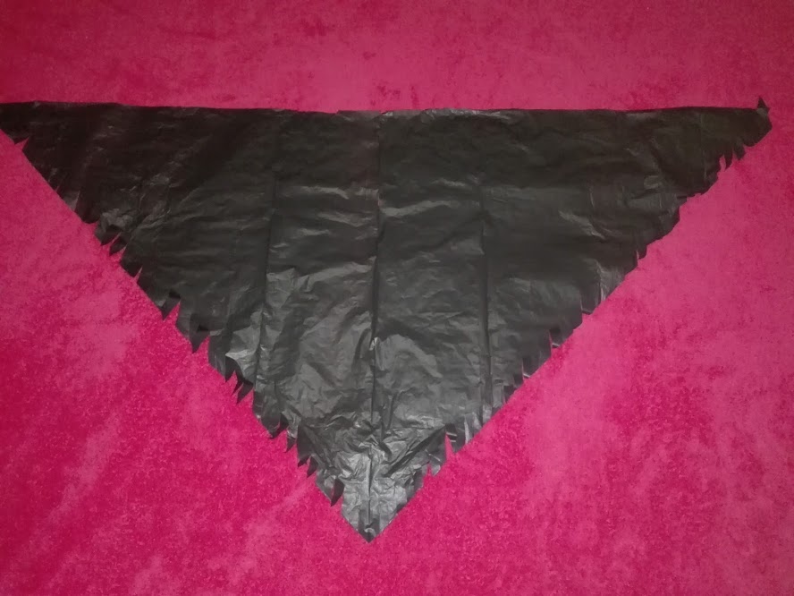 - Le pegamos flecos a nuestro mantón con folios de colores o recortamos la misma bolsa.