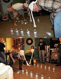 Para preparar el juego tendremos que colocar botellas de agua (las que tengamos a una distancia aproximadamente de 1m (1 paso) de nosotros. Después colocaremos la pelotita dentro de los calcetines o pantys y nos lo pondremos en la cabeza. Ahora sin usar las manos y solo moviendo la cabeza tendremos que derribar el mayor número de botellas posibles en 1 minuto. Esto lo realizaremos en parejas y por rondas. Si no tenemos pelotitas pequeñas en casa podremos hacer las nuestras propias únicamente con globos y arroz o garbanzos, lentejas… Llenaremos un globo del material que tengamos (no mucho) y ataremos el globo, después lo cubriremos con dos globos más por encima cortando previamente la boquilla.